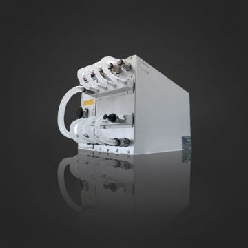 У него внутри предусмотрена система для циркуляции жидкости: вместо кулеров стоят патрубки и каналы для подключения к насосной группе и градирне.