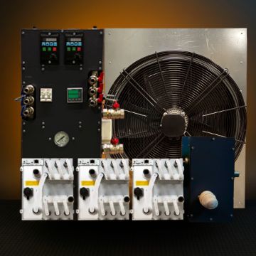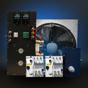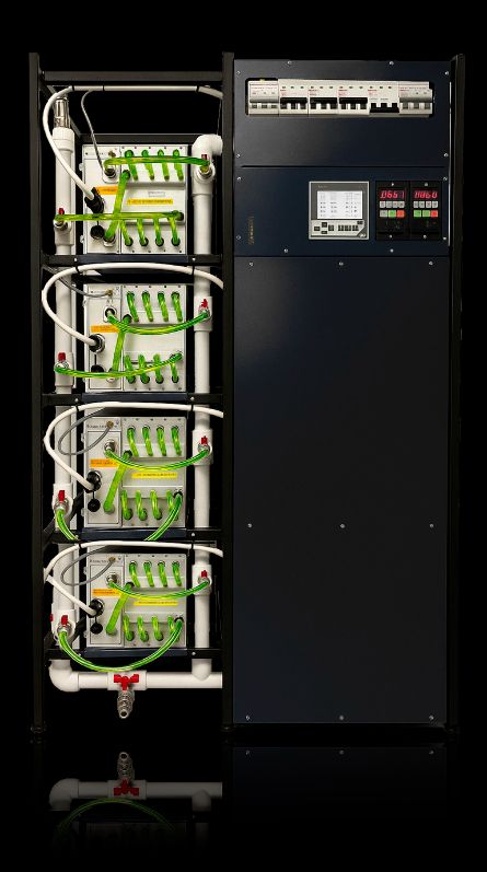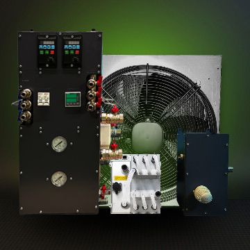 - Встроенный ПИД-регулятор и два частотных преобразователя (для насоса и градирни) обеспечивают плавную работу системы