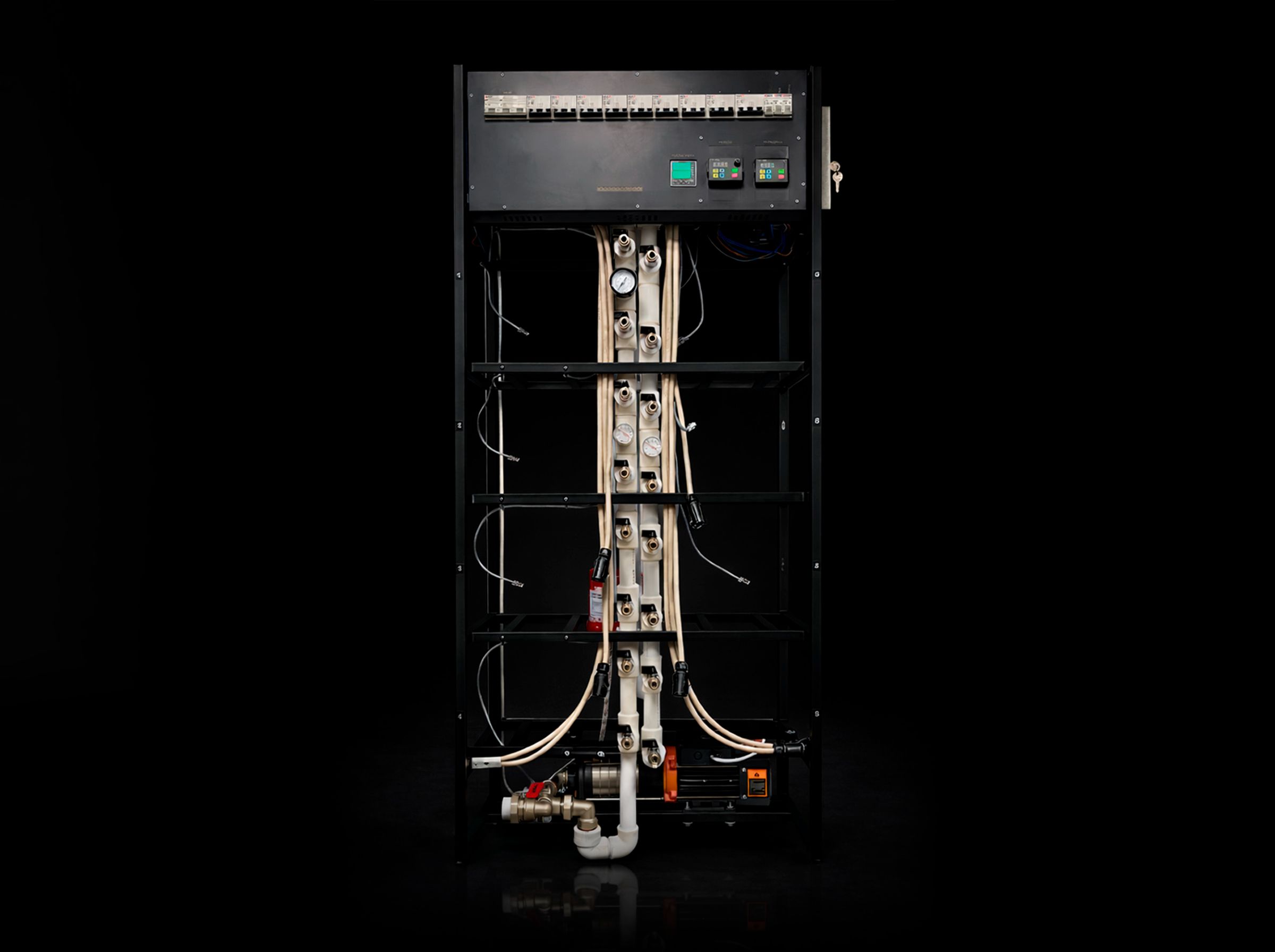 Насосная группа и стойки охлаждения продлевают срок службы асиков, обеспечивают электробезопасность и снимают необходимость постоянного контроля — система работает полностью автоматически.